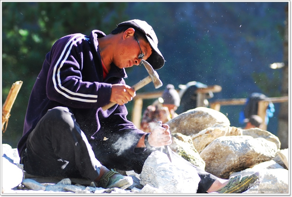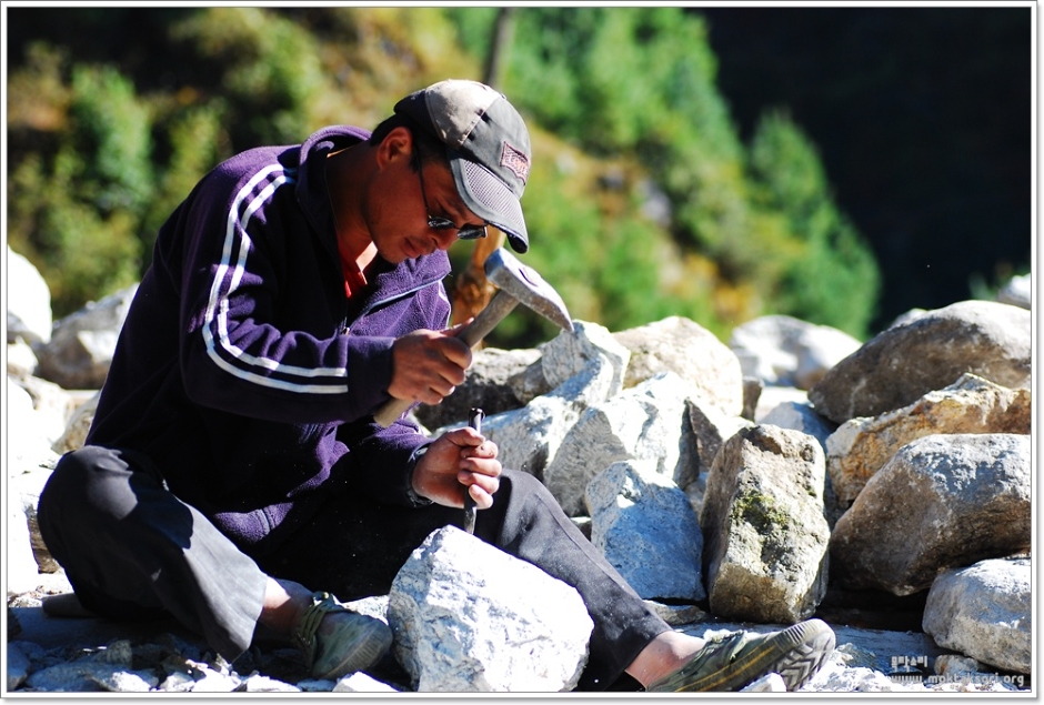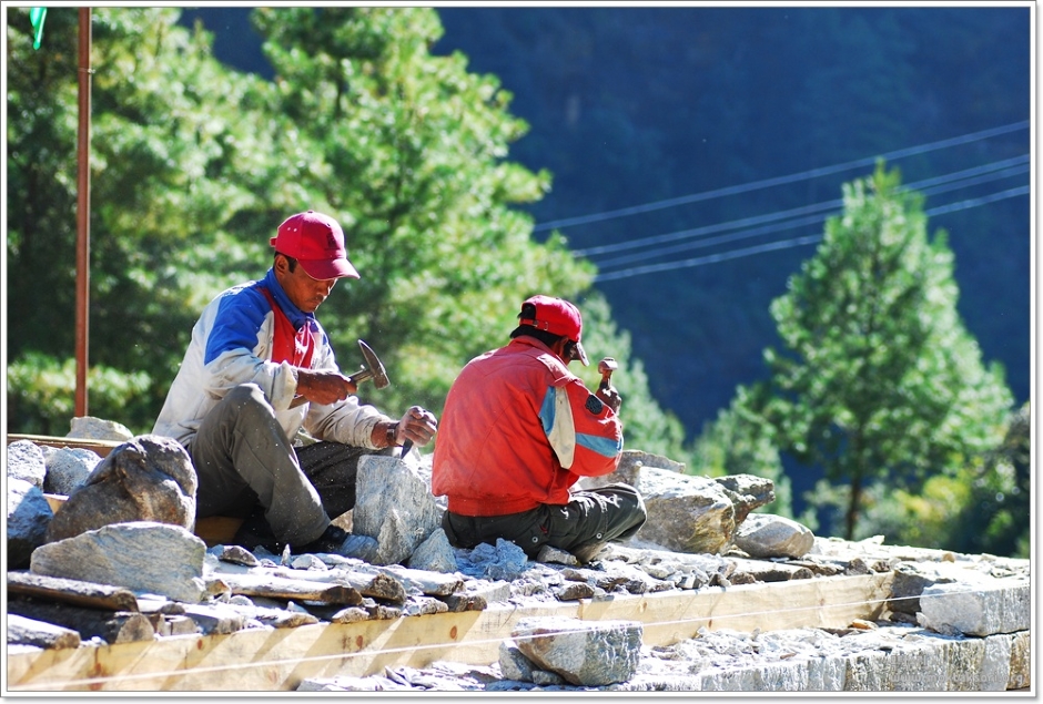 한참을 걷자니 돌을 깨 집을 짓는 풍경이 펼쳐진다.