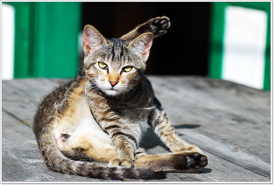 낯선 여행자의 카메라를 보고 깜짝 놀라는 고양이 한 마리.