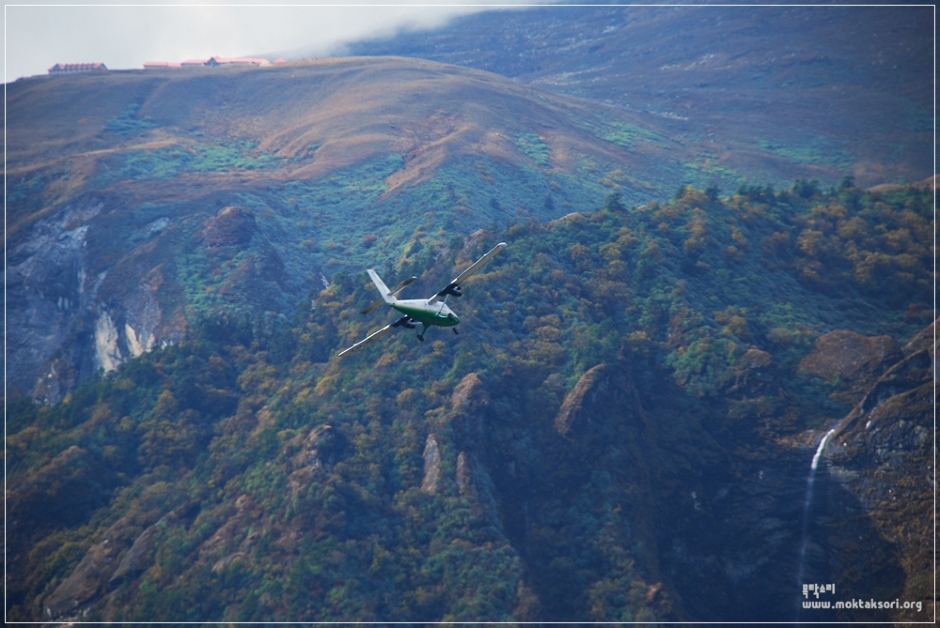 한참을 앉아 있자니 미니 비행기 한 대가 루클라 쪽에서 날아오더니