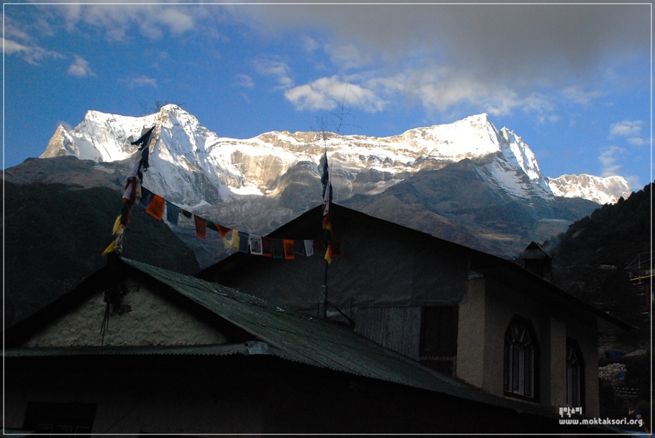 캉테가와 탐세르쿠를 병풍처럼 배경으로 하고 있는 롯지 하나가 시선을 잡아끈다.