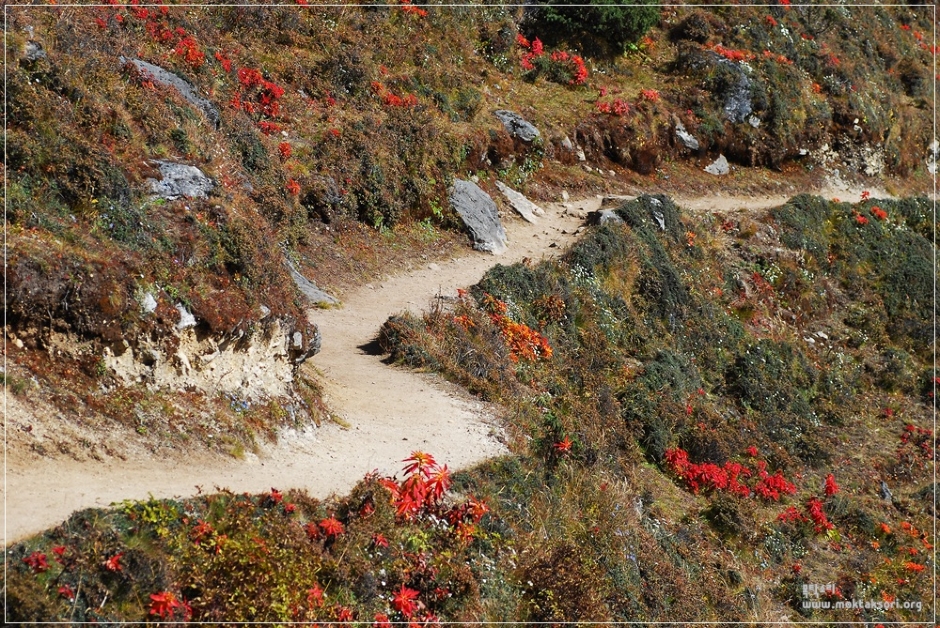언덕길을 따라 오르니 쿰중과 호텔로 가는 길이 나뉘는 산정 즈음에
