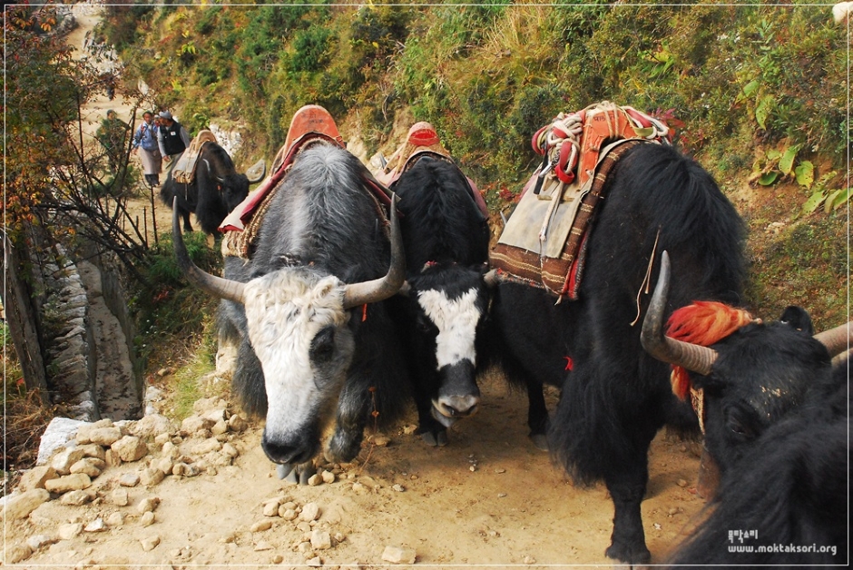 목에 댕댕 거리며 종소리를 울리고 무겁게 걷는 야크들까지