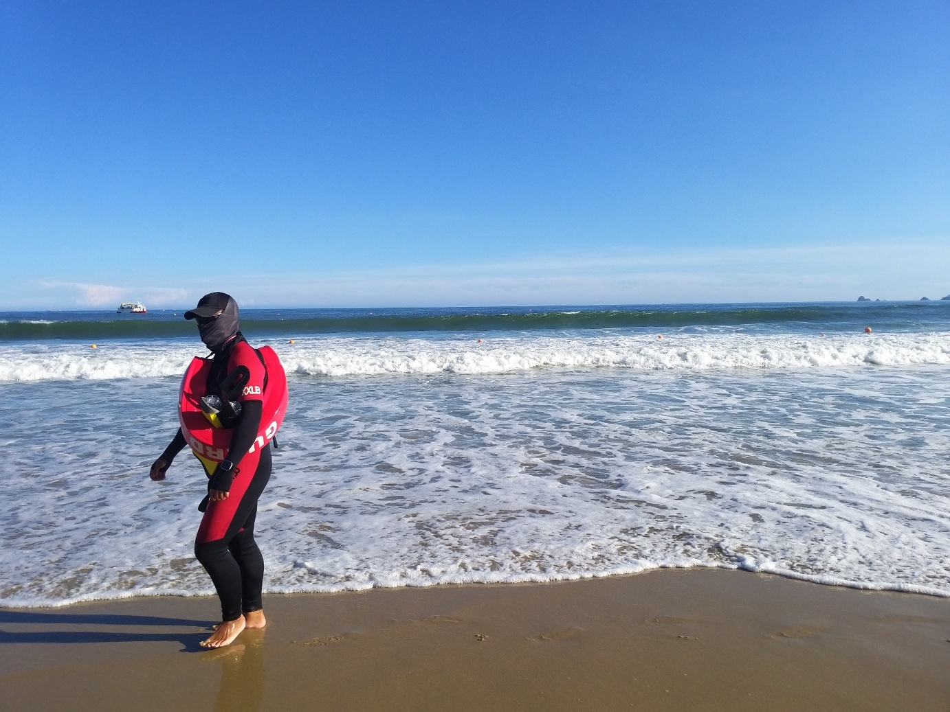 해상 경비원들이 아예 바닷속에 들어가질 못하게 경비가 삼엄하더군요..