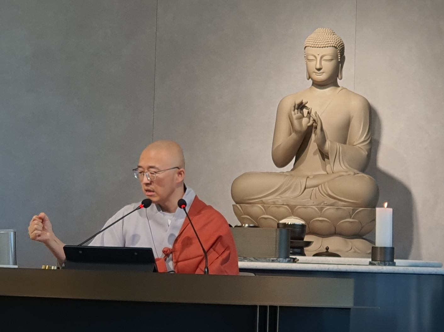 이 무더위에도 법문 삼매경이신 우리 스님