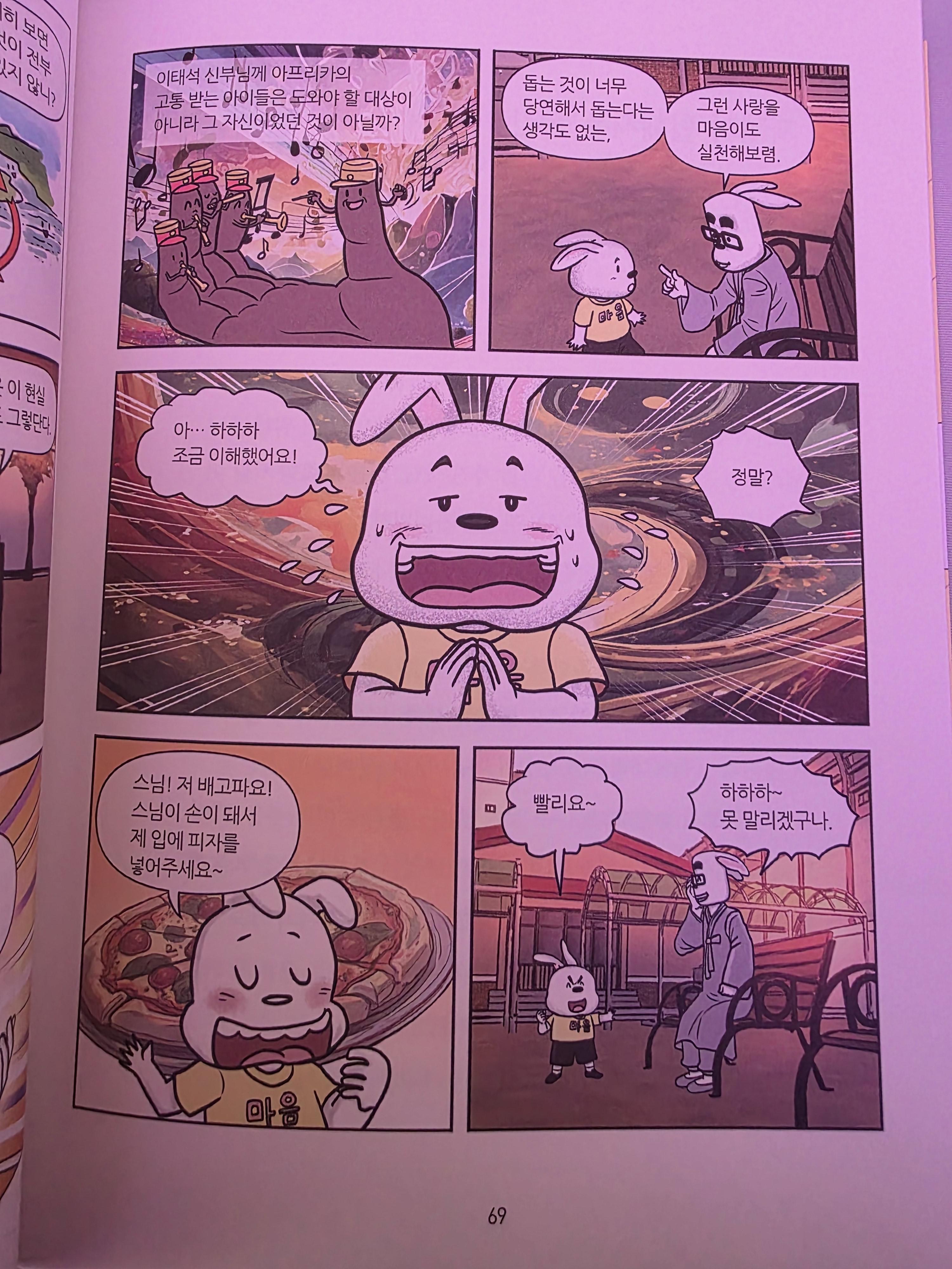 매 주제의 시작은 고통달 작가님의 만화로 구성해서 누구나 친근하게 문제에 접근할 수 있도록 하였고, 이어서 따뜻한 사유와 실천의 방향을 담은 법상 스님의 이야기로 생각할 거리를 풍부하게 더했다. 여기서 끝나지 않고 더 공부하고 싶은 독자들을 위해 QR코드를 찍으면 해당 주제에 맞는 유튜브 영상 법문도 함께 시청할 수 있다.